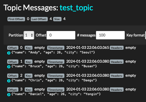 저의 경우는 아래의 데이터를 test_topic 에 저장한 상태입니다.