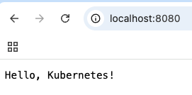 Kubernetes 내부의 Pod 까지 네트워크 트래픽이 전송되게 됩니다.curl http://localhost:8080Hello, Kubernetes!웹 브라우저를 통해서 로드밸런서 서비스의 테스트가 가능합니다.