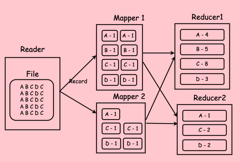 유명한 예시인 Word Count 관련 MapReduce 를 예로 들면,